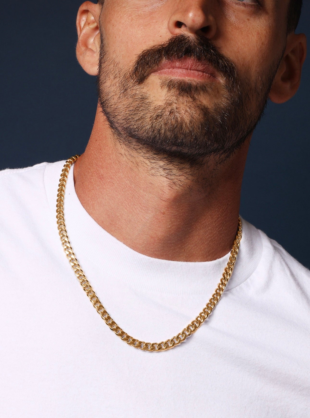 These elegant chains are handcrafted in stainless steel and is a very popular style. 7 mm in width and available in 22 or 24 inch. It will never fade or tarnish! Solid and heavy feel that securely lock with a durable lobster clasp.
