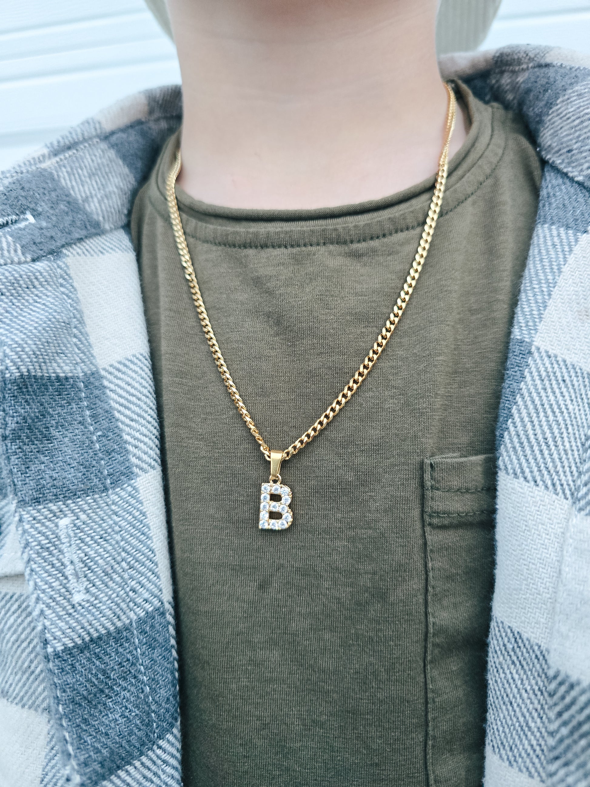 Stainless steel gold plated curb cuban with initial pendant. Please list the initial of your choice in the notes at checkout or send a private message.