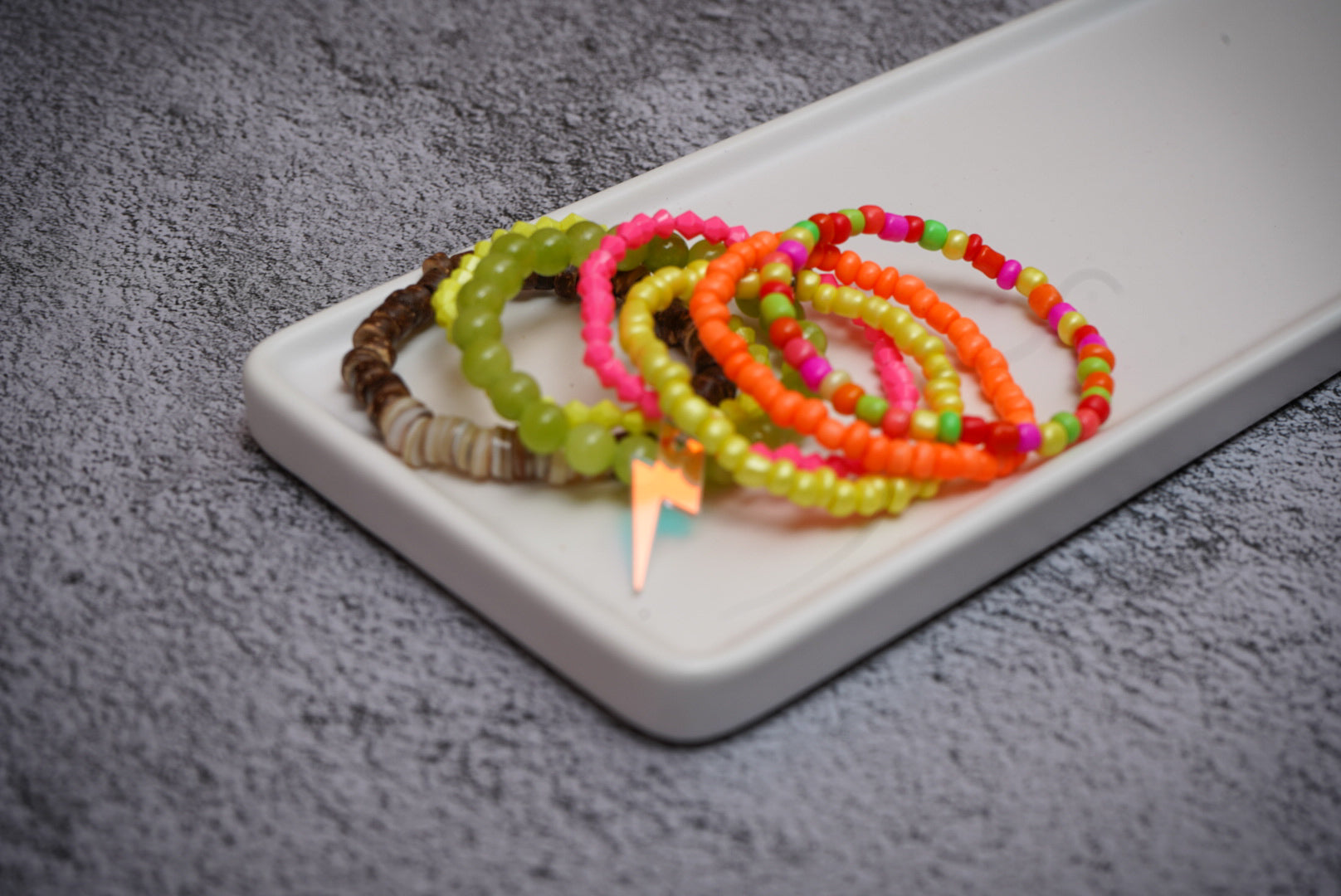 Keep bracelets away from water, direct sunlight, oils, and/or harsh chemicals. These things can damage the finish on the beads. Please treat with special care, as some materials may be fragile.