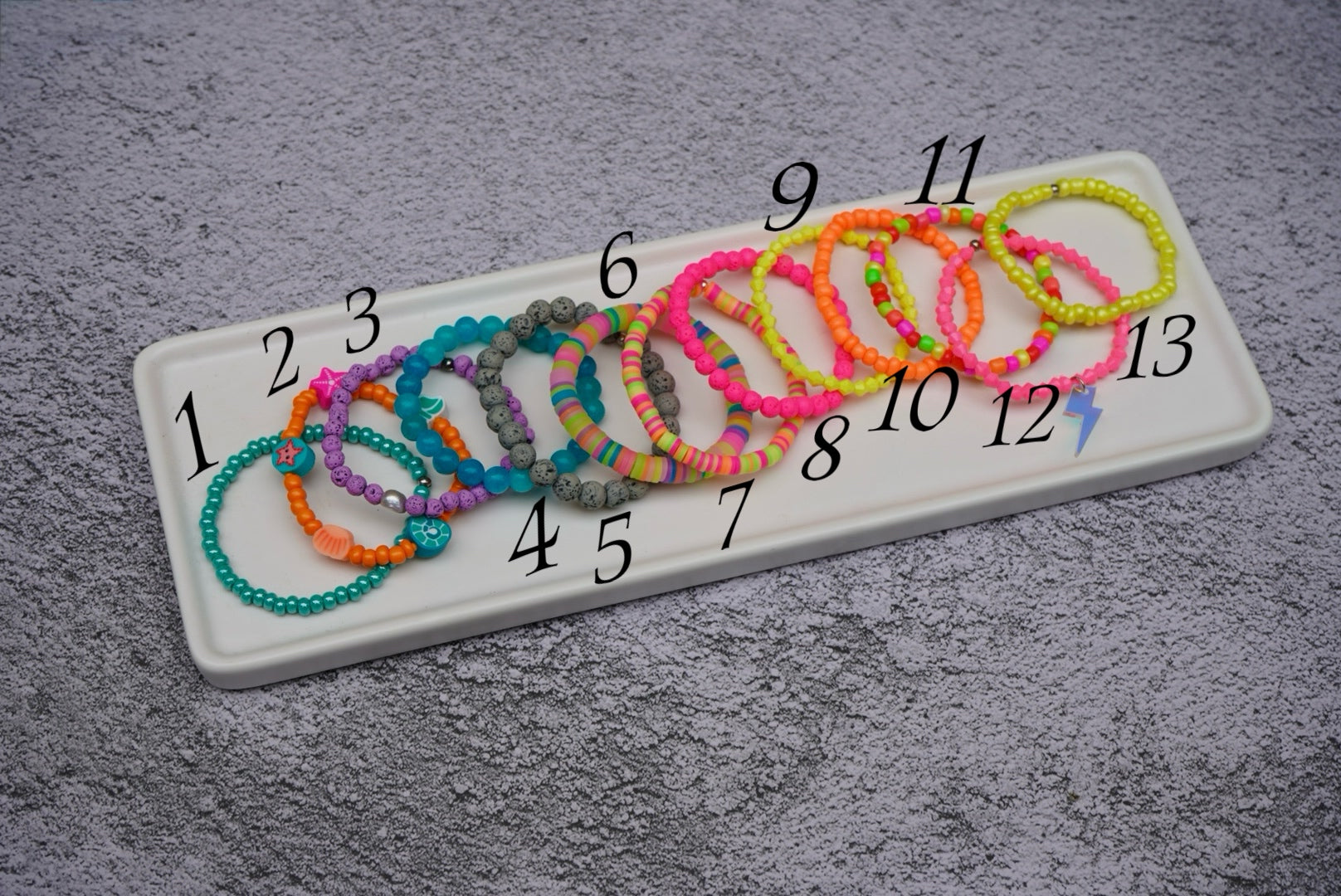 This listing is for 1, 3, 5, or 10 bracelets. Measure your exact wrist measurement and add on 1/2 inch - 3/4 inch for room. These are stretch bracelets, but you want to make sure you have some extra room for comfort.