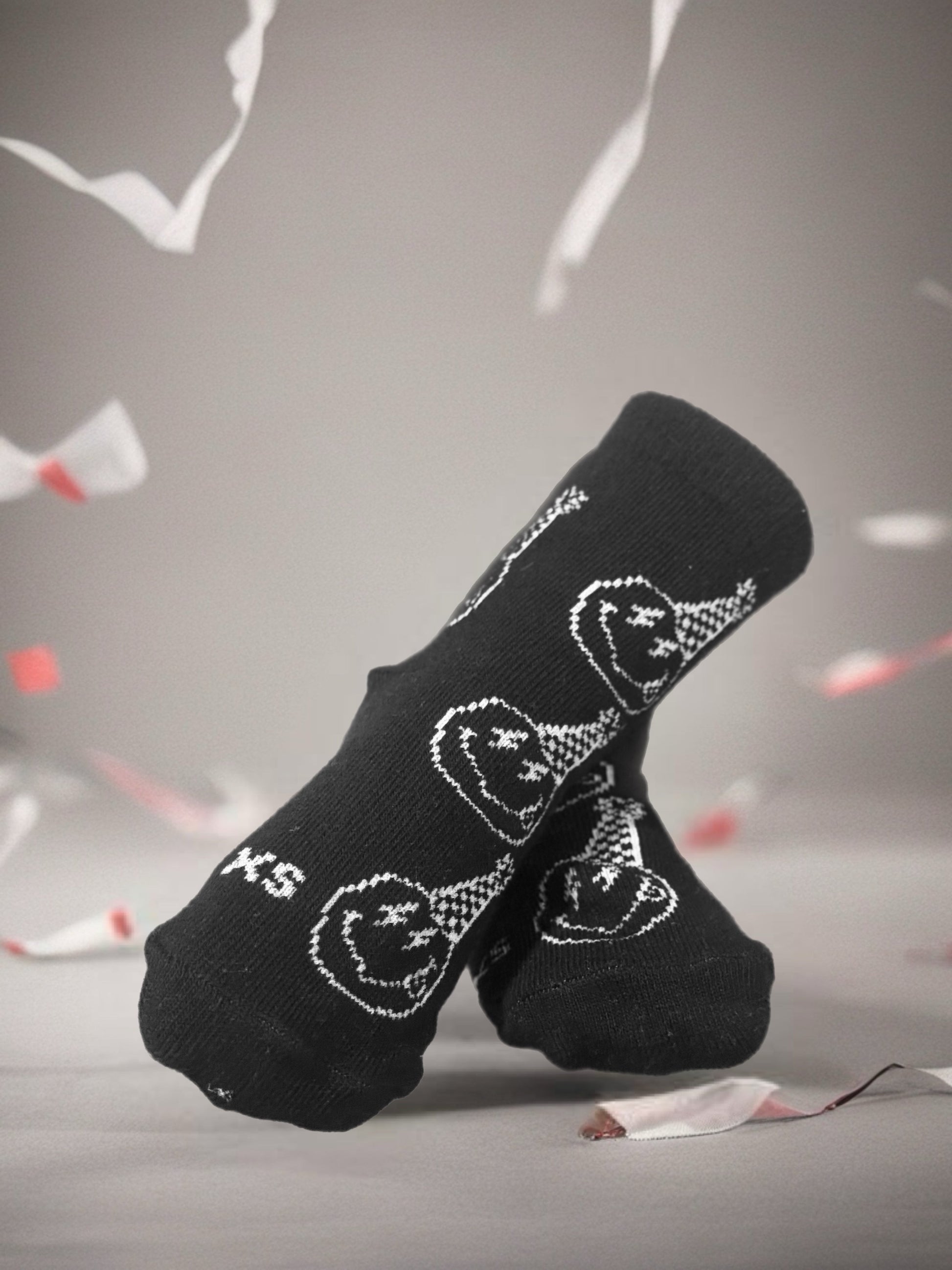 Sizes Infant, Extra Small, Small, Medium have logo grips on the bottom of the feet large have a stitched logo on the bottom of the feet.