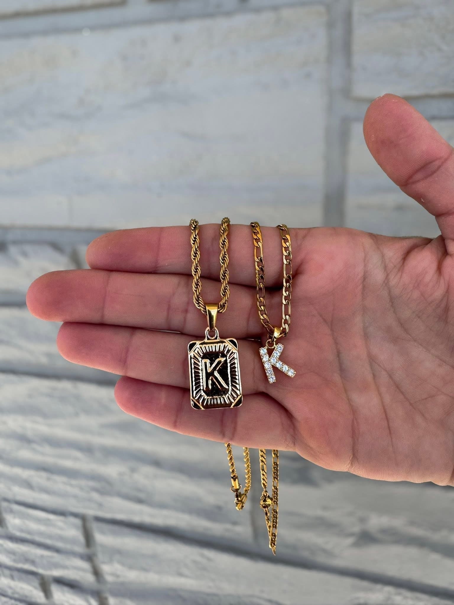 Chunky initial on Gold 3mm stainless rope or 3mm figaro