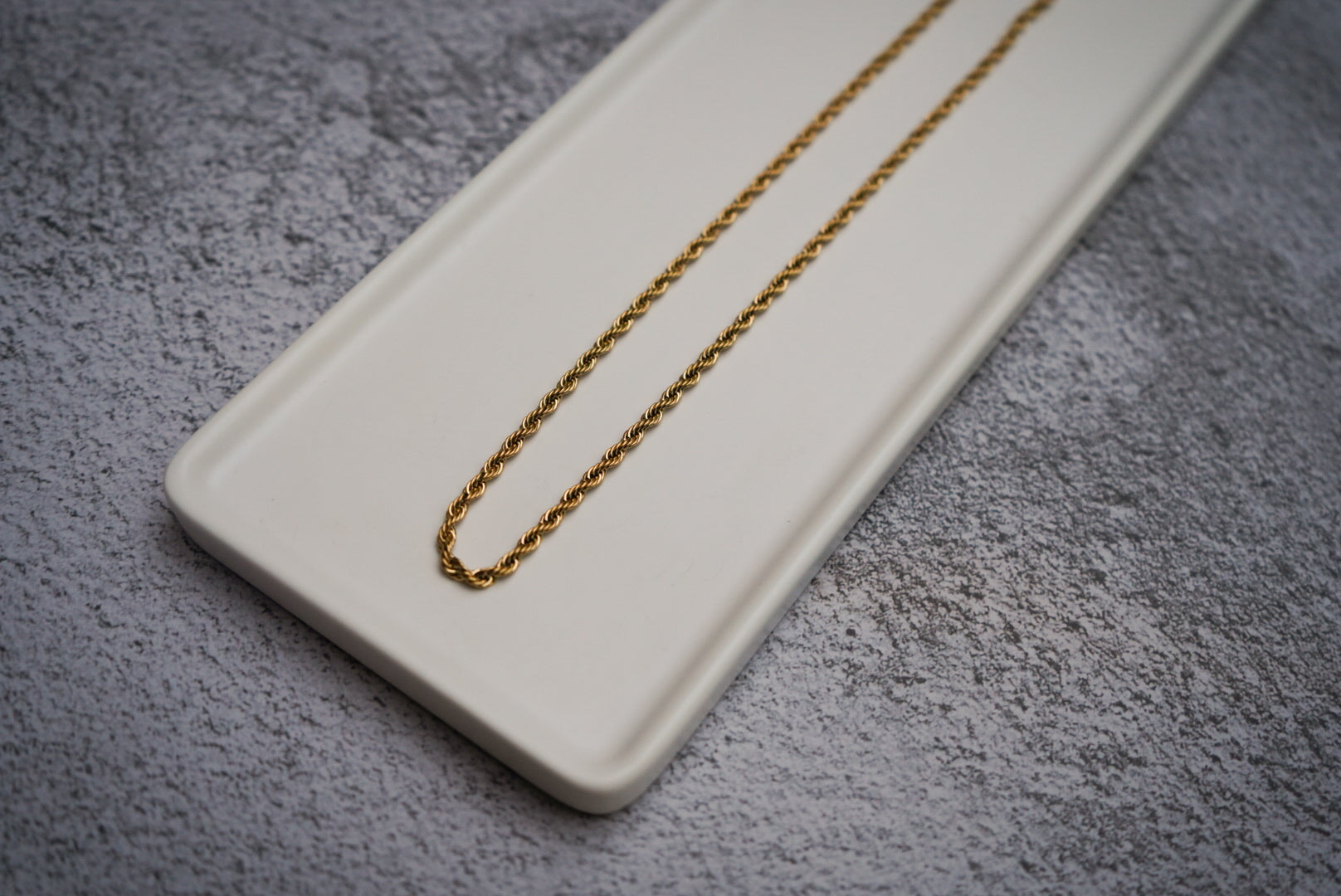 These elegant chains are handcrafted in stainless steel and gold plated. 3MM in width and available in 18, 20 or 22 inch. It will never fade or tarnish! Solid and heavy feel that securely lock with a durable lobster clasp.