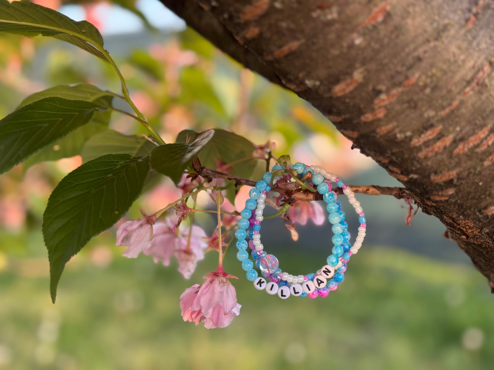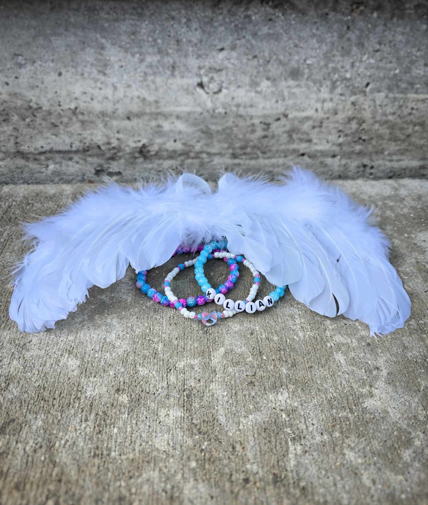 This listing is for  set of 2 bracelets or you can add a third “name” bracelet. ***You can put your preference for boy or girl main beads on the ribbon bracelet in the text box if you have one. You can also choose matte white seed beads or pearl by listing in the box.*** Measure your exact wrist measurement and add on 1/2 inch - 3/4 inch for room. These are stretch bracelets, but you want to make sure you have some extra room for comfort.