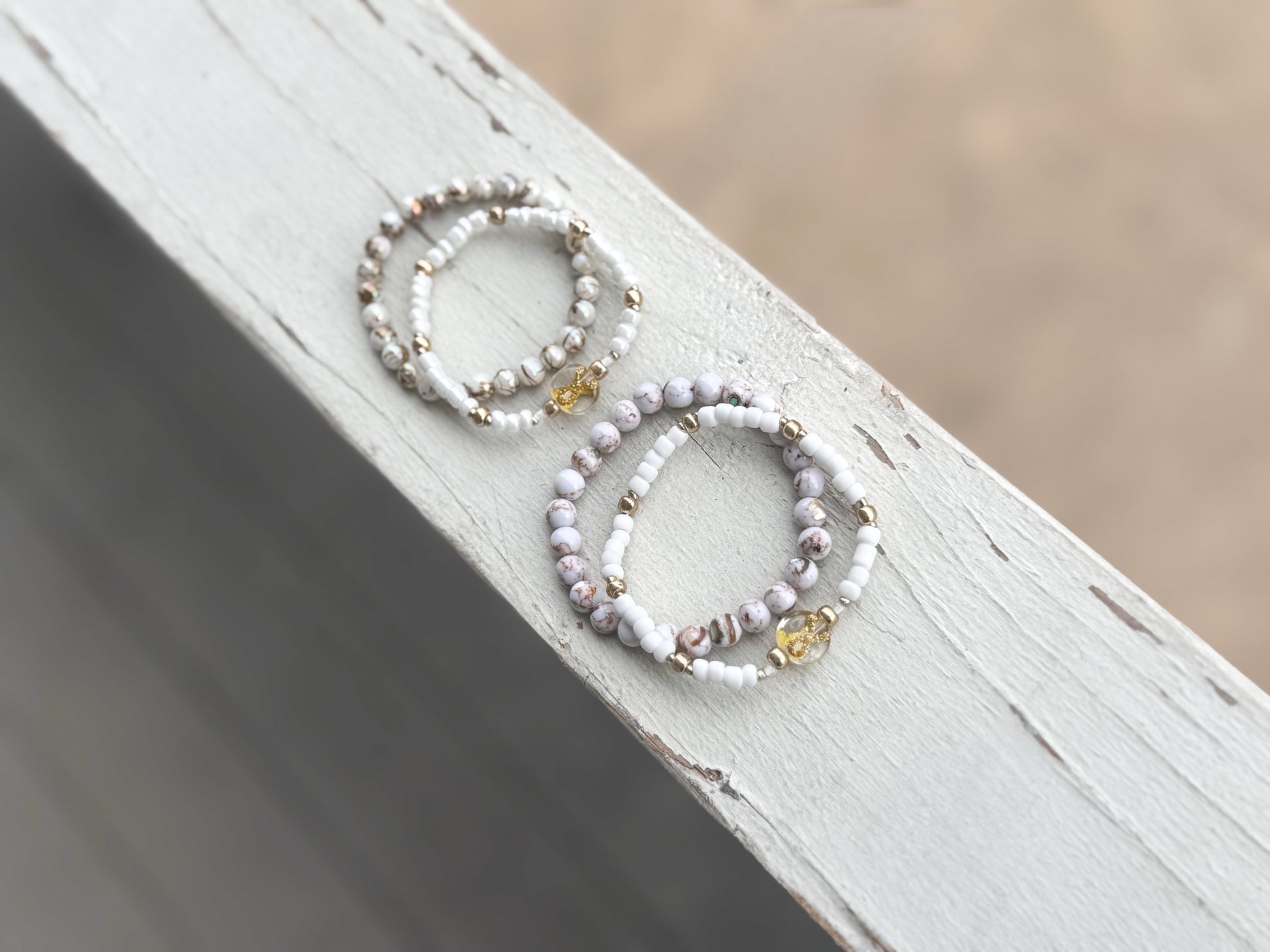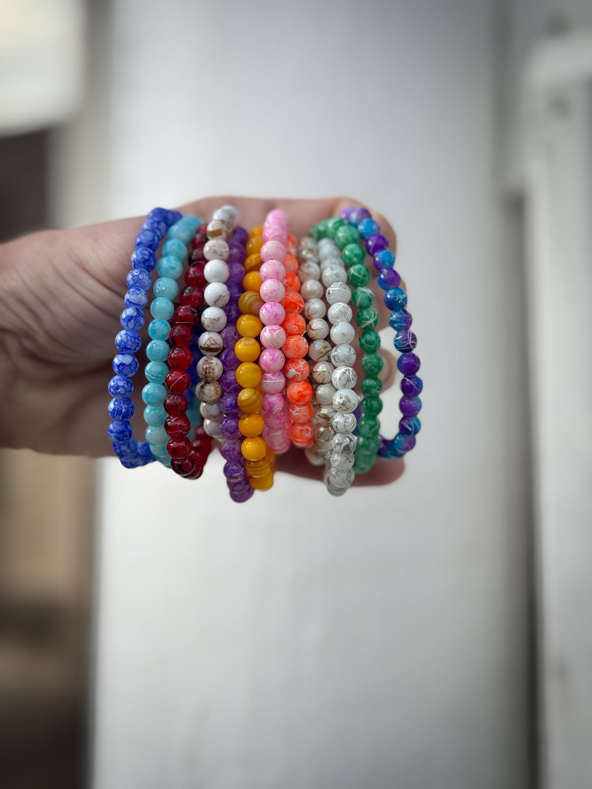 Keep bracelets away from water, direct sunlight, oils, and/or harsh chemicals. These things can damage the finish on the beads. Please treat with special care, as some materials may be fragile.