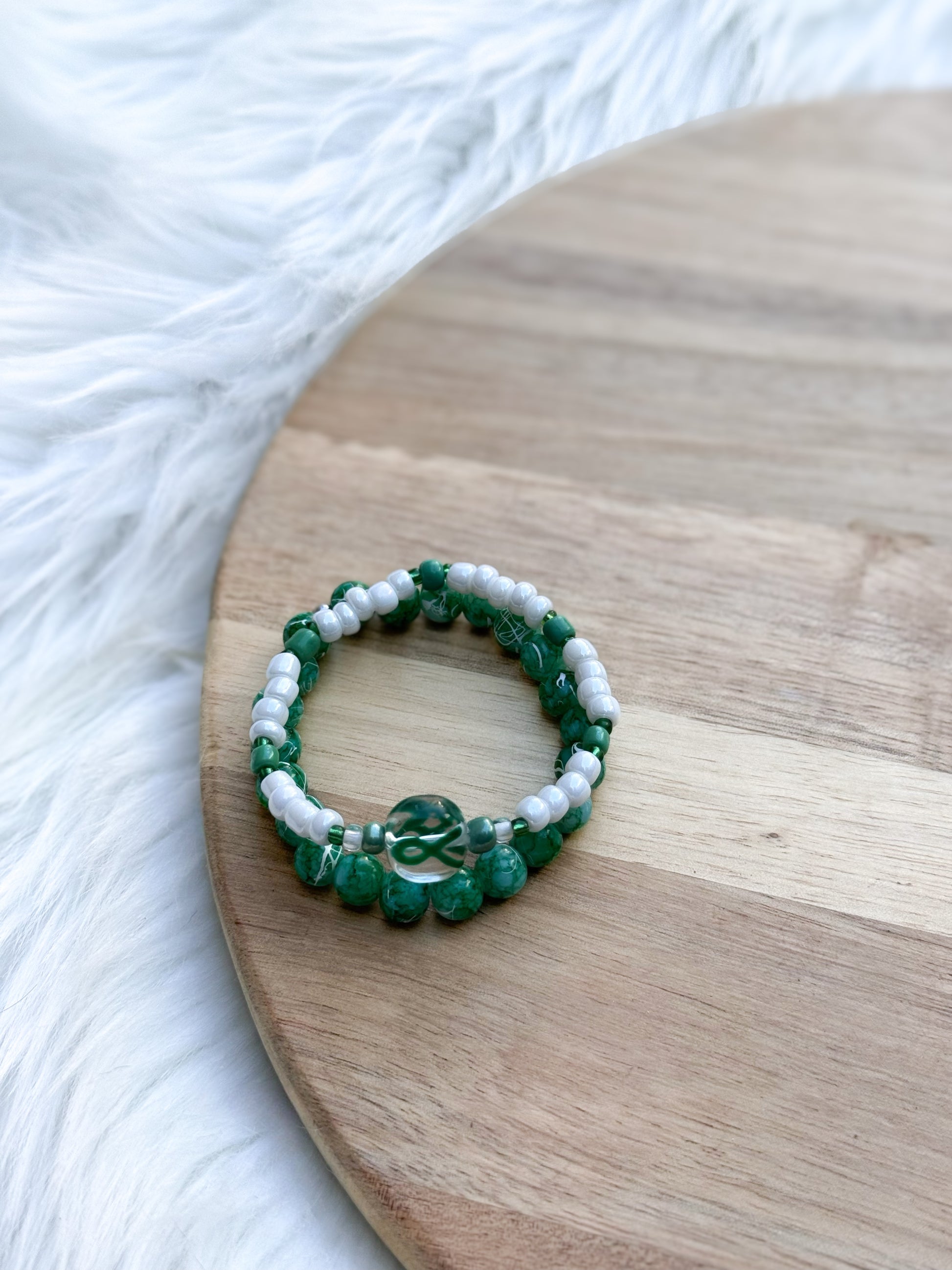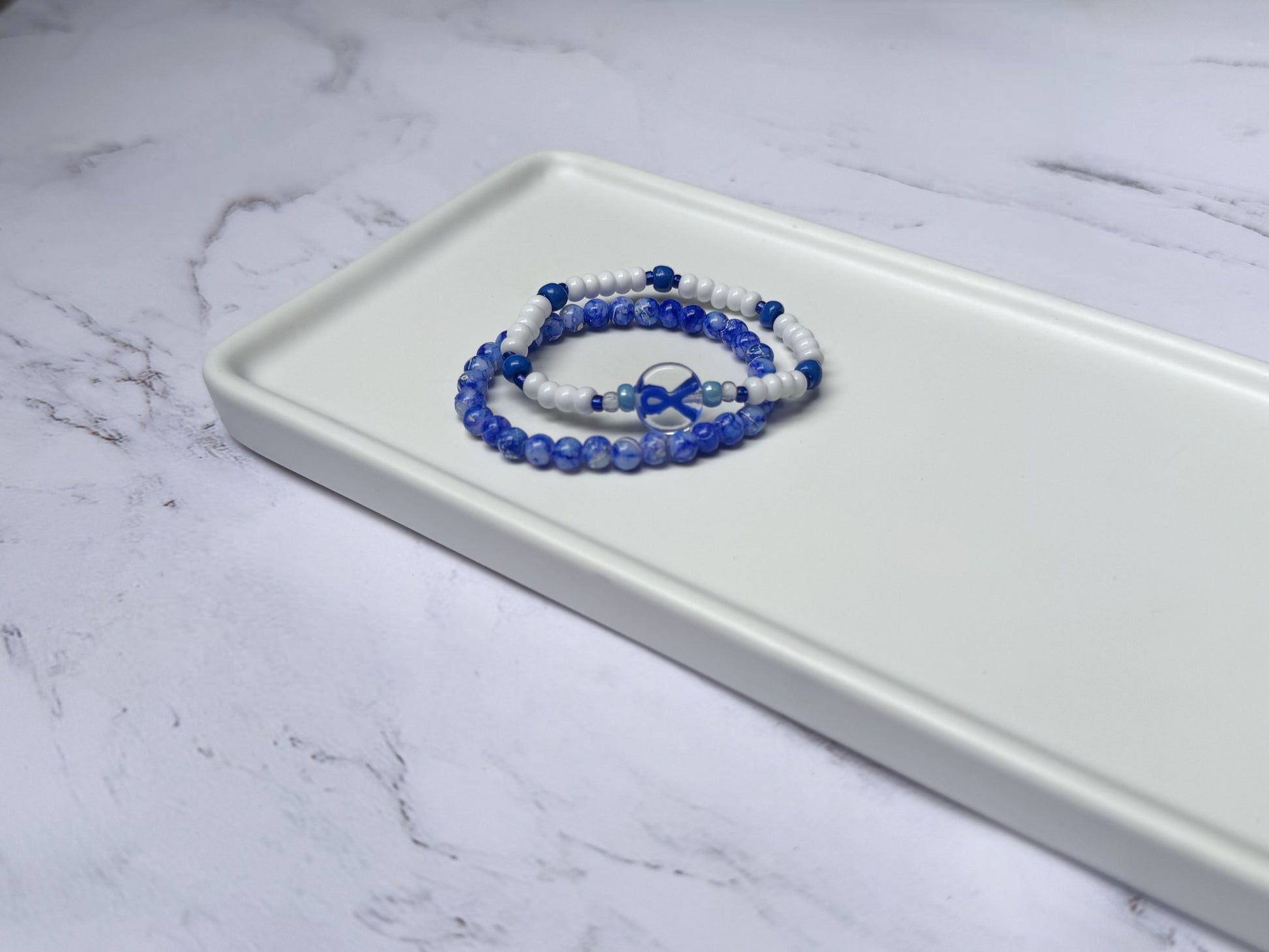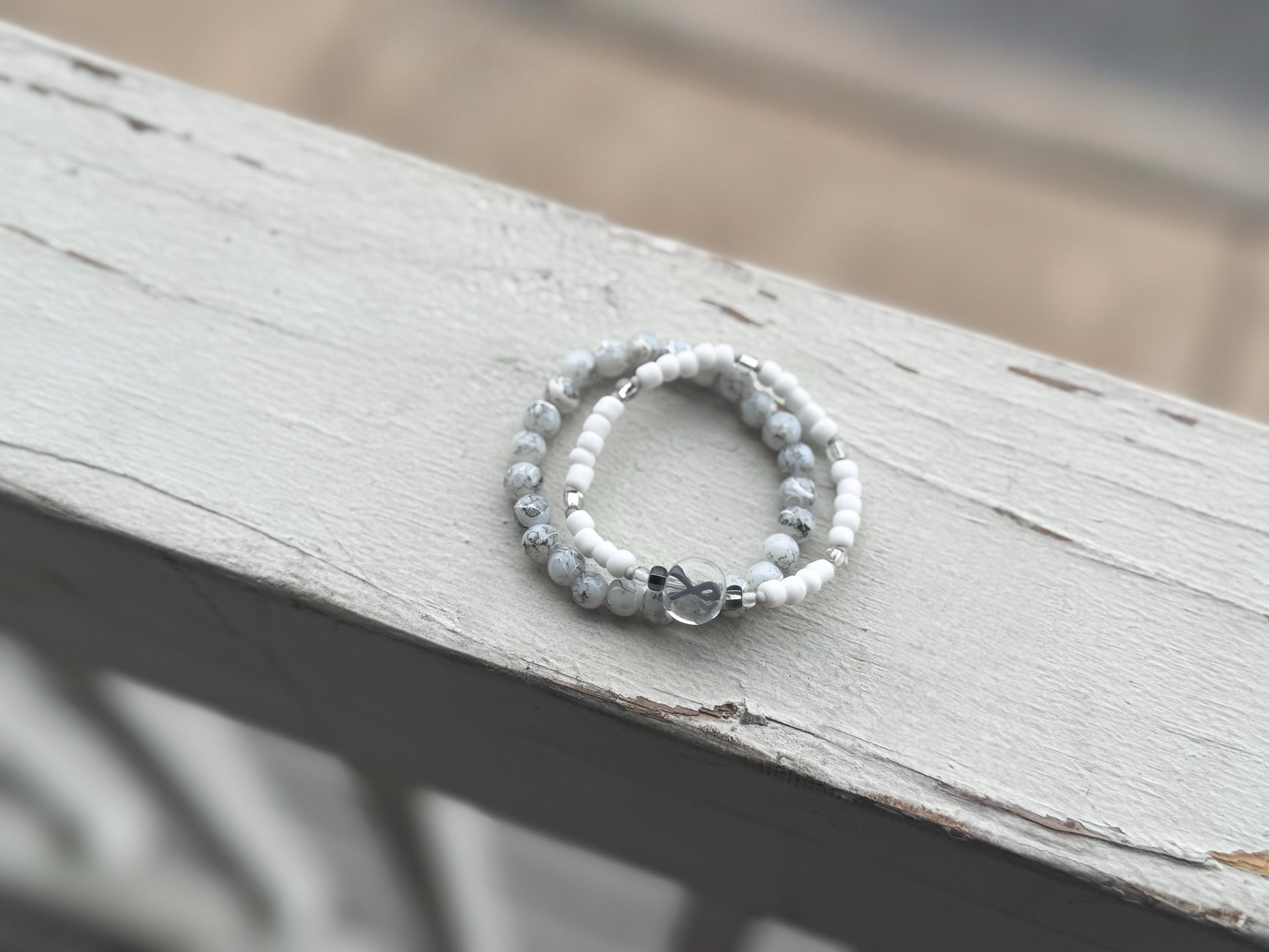 This listing is for  set of 2 bracelets or you can add a third “name” bracelet. ***You can put your preference for boy or girl main beads on the ribbon bracelet in the text box if you have one. You can also choose matte white seed beads or pearl by listing in the box.*** Measure your exact wrist measurement and add on 1/2 inch - 3/4 inch for room. These are stretch bracelets, but you want to make sure you have some extra room for comfort.