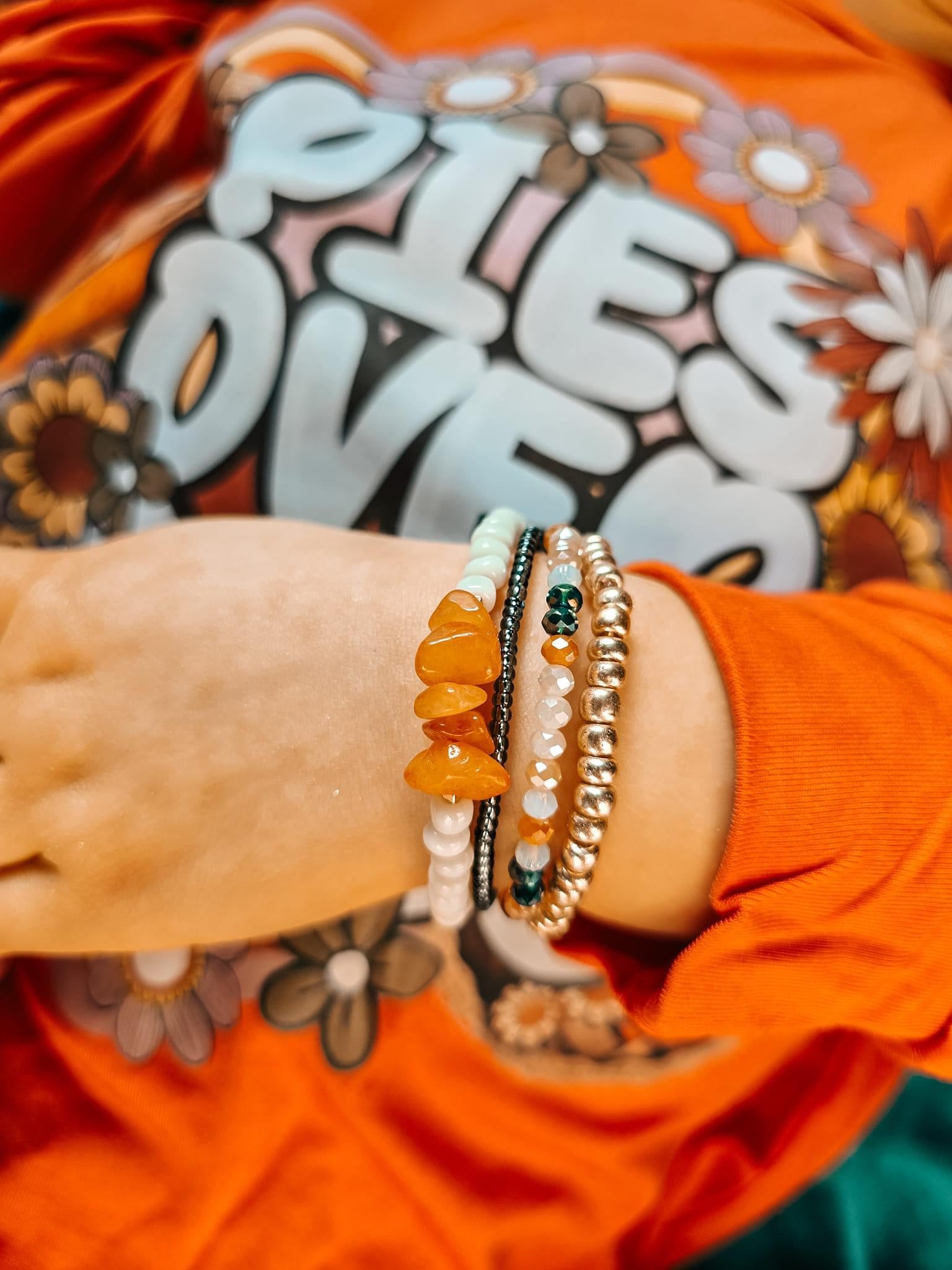 Keep bracelets away from water, direct sunlight, oils, and/or harsh chemicals. These things can damage the finish on the beads. Please treat with special care, as some materials may be fragile.