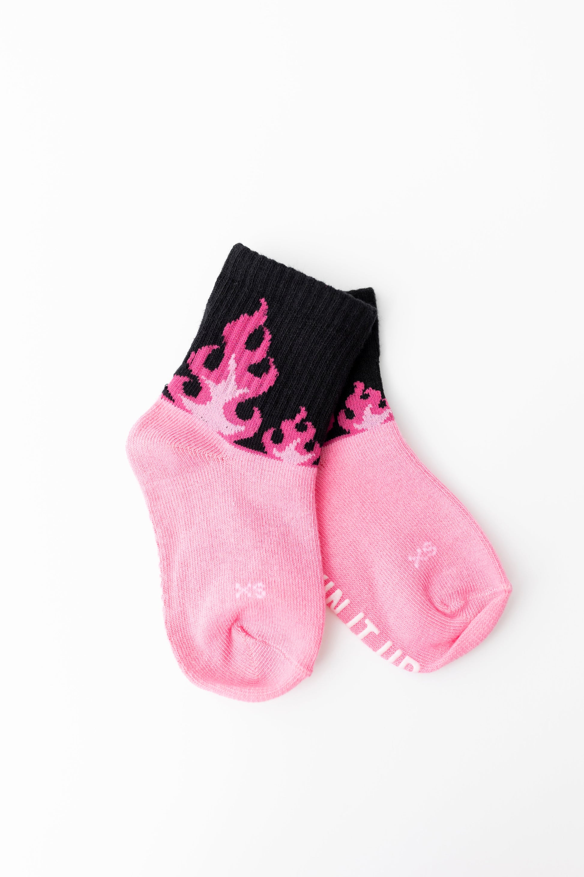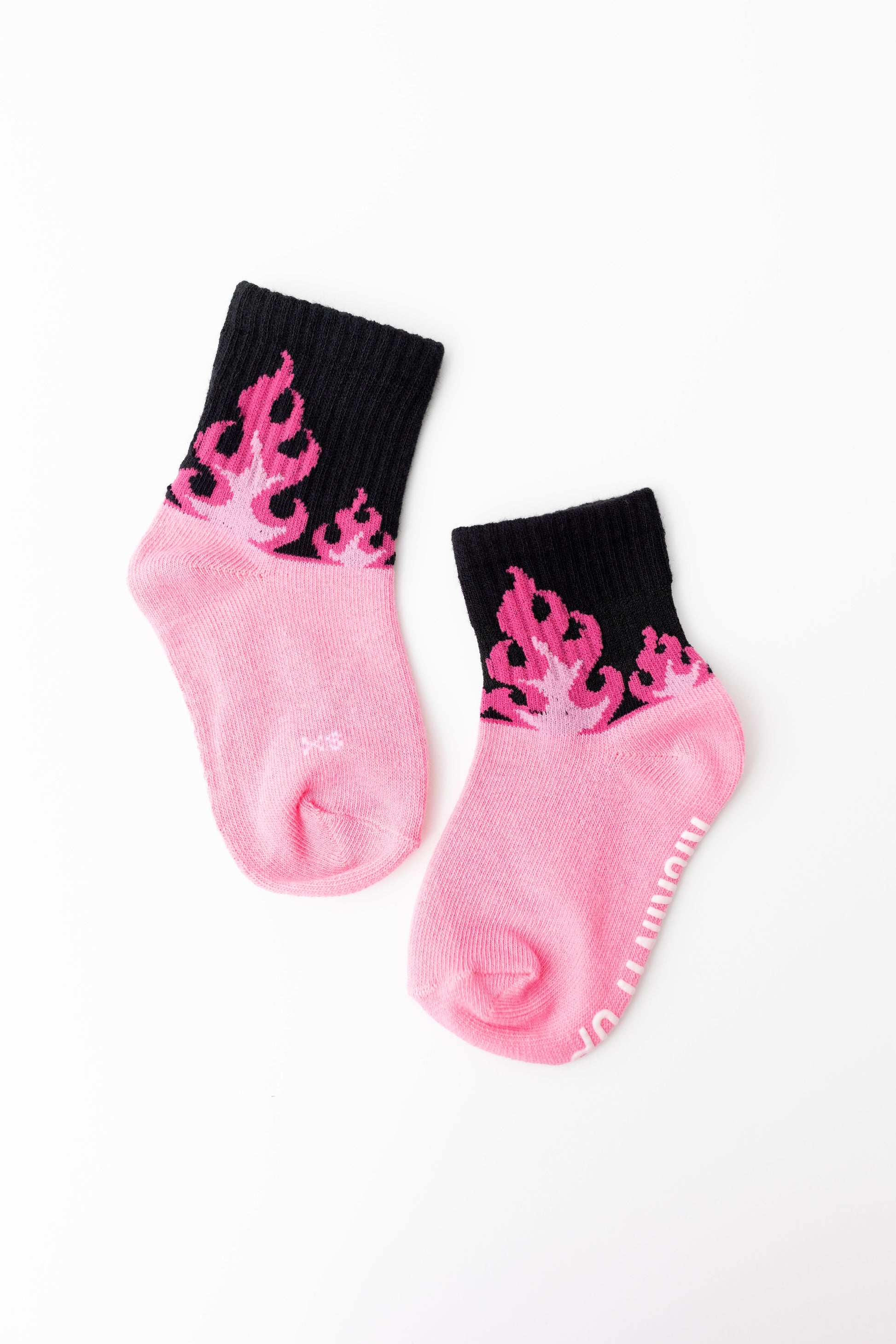Sizes Infant, Extra Small, Small, Medium have logo grips on the bottom of the feet large have a stitched logo on the bottom of the feet.