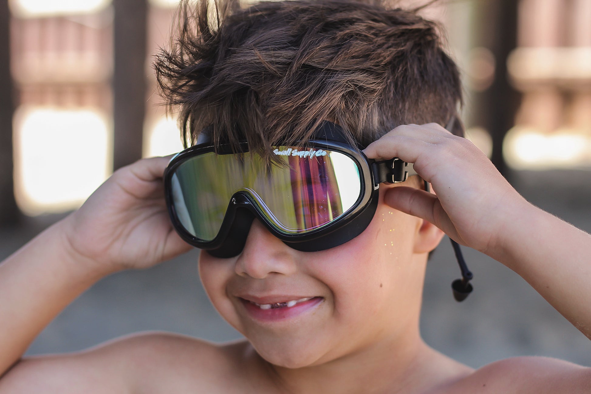 Introducing our waterproof Swell swim goggles, UV protected & anti-fog, and perfect for all water activities. These include integrated earplugs and feature a silicone cushioned strap for ultimate comfort. Recommended for ages 1-12. Case included.