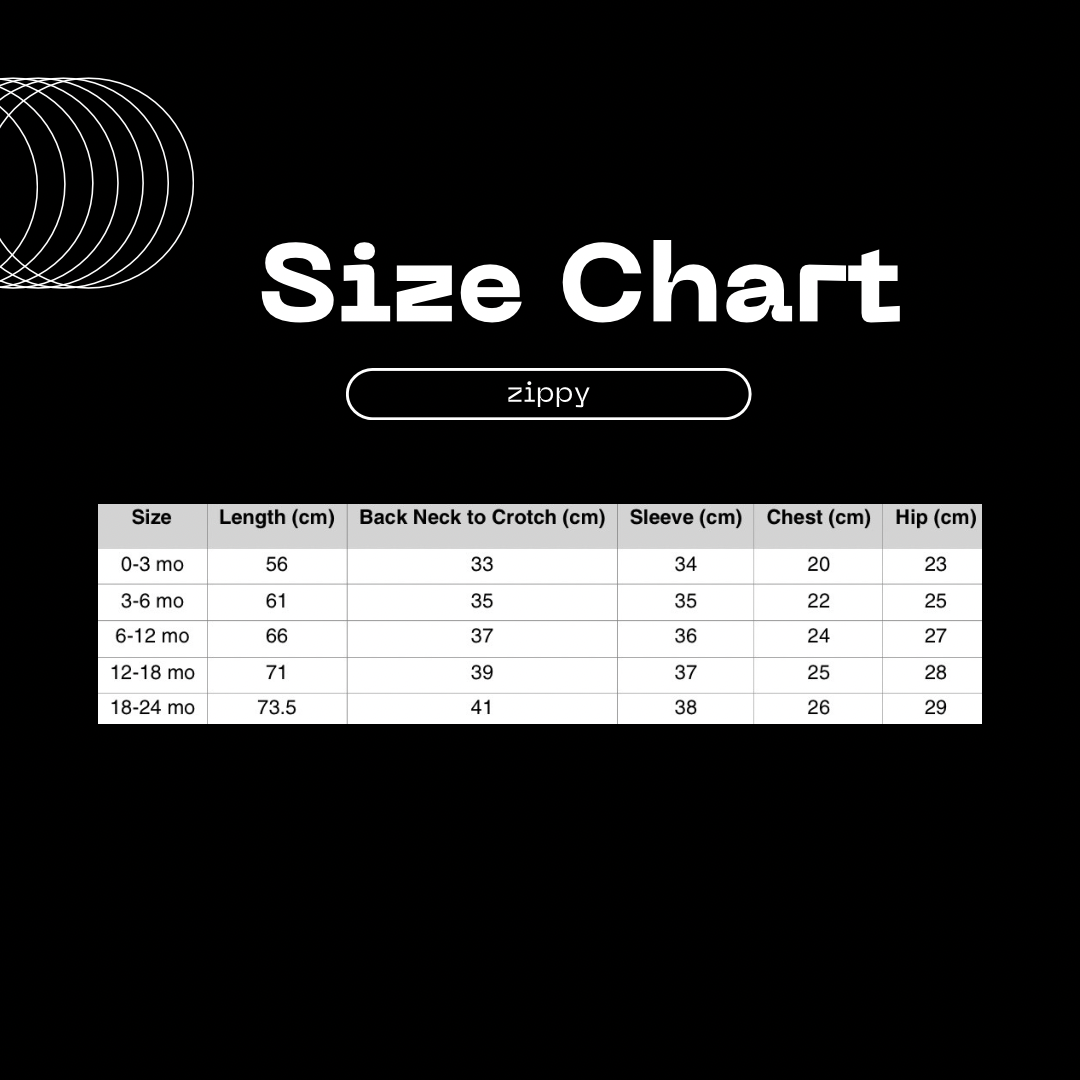 Zippy Details sizes 0/3 - 18/24 :